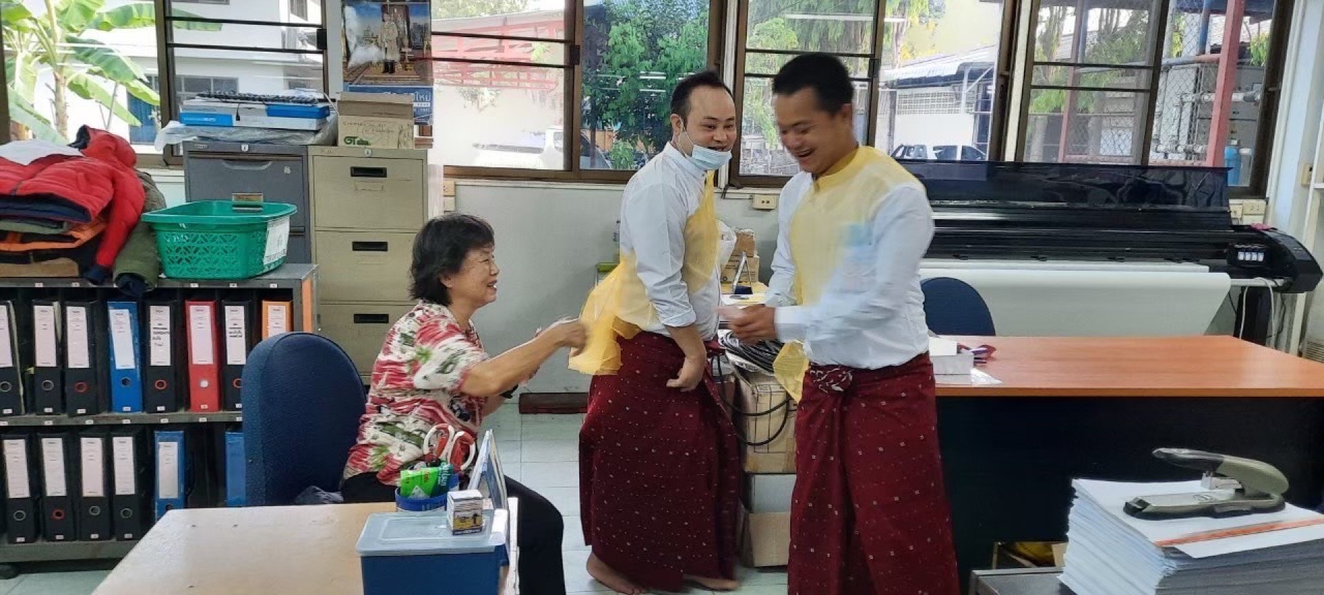every? year in Thai & Myanmar New Year time., it is traditional for male staffs to become monks. We gave monk's dresses and accessories needed for them.