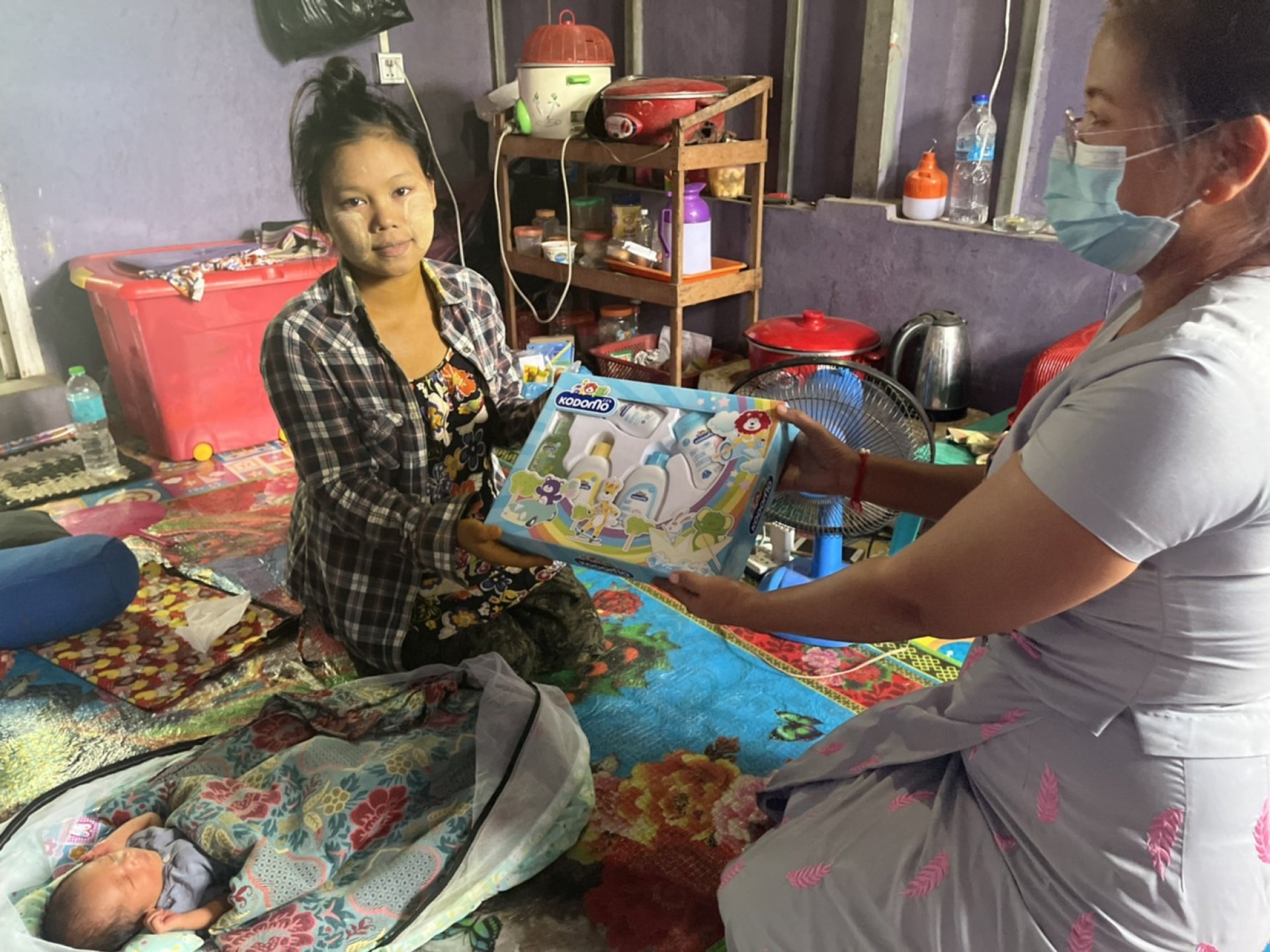 New mother gift. Factory representative visited new mother (newly give birth) at either hospital or home to greet them for the new born babies and also tell them their rights to take after birth leave.